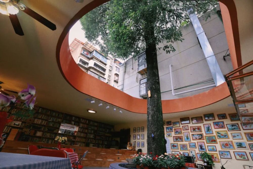 老昆明雜書館天井里矗立著300多年樹齡的香樟樹。高吳雙 攝
