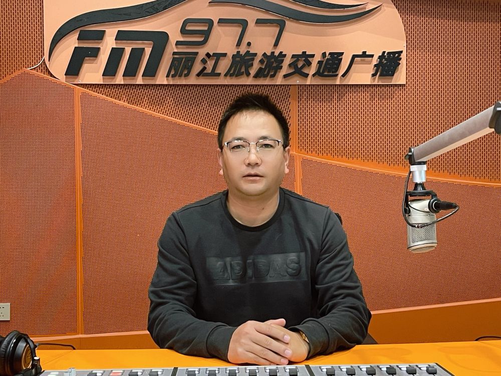 11月27日,2025/2026富滇銀行云南省城市足球聯(lián)賽麗江賽區(qū)競(jìng)賽組組長(zhǎng) 張雄 走進(jìn)FM97.7麗江旅游交通廣播直播間。(麗江融媒記者 徐蕾 攝)