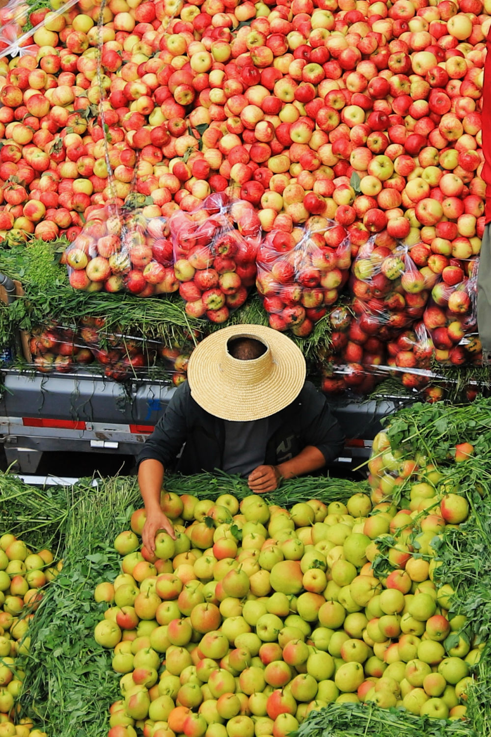 攝影作品《豐收的蘋果攤》以飽滿色彩與構(gòu)圖,渲染出農(nóng)民豐收的喜悅氛圍。值得一提的是,在堆積如山的紅綠蘋果間,農(nóng)民的草帽成為平凡生活的詩(shī)意注腳。畫面里的每一個(gè)蘋果、每一道褶皺,都在講述著勞作與收獲的故事,是人文攝影中對(duì)生活本真的細(xì)膩捕捉,讓平凡場(chǎng)景綻放出別樣的視覺(jué)與情感力量。