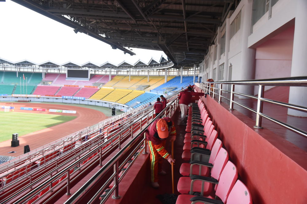作為比賽場(chǎng)地,體育場(chǎng)內(nèi)的3.2萬(wàn)個(gè)看臺(tái)座位,經(jīng)工作人員的精心維護(hù),已煥然一新,只待球迷們到來(lái)。據(jù)比賽衛(wèi)生組相關(guān)負(fù)責(zé)人介紹,自12月6日起,古城區(qū)投控集團(tuán)每日投入60余名保潔人員,對(duì)看臺(tái)座椅、球員更衣室、公共衛(wèi)生間及場(chǎng)館周邊進(jìn)行全方位細(xì)致清掃,全力保障球迷擁有干凈整潔的觀賽環(huán)境。