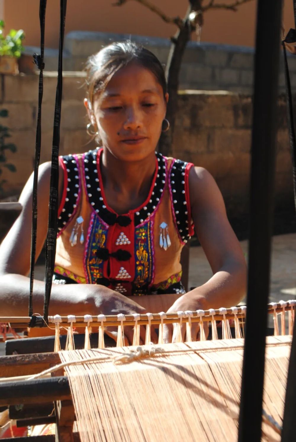 這門“天然染色+自紡自織”的手藝,把佤族人的“黃色崇拜”深深地織進(jìn)了經(jīng)緯。如今村里40歲以上的婦女,多半能坐在織布機(jī)前擺弄絲線,那些吱呀作響的織布機(jī),成了家家戶戶的“老伙計(jì)”,藏著說(shuō)不完的民族故事。