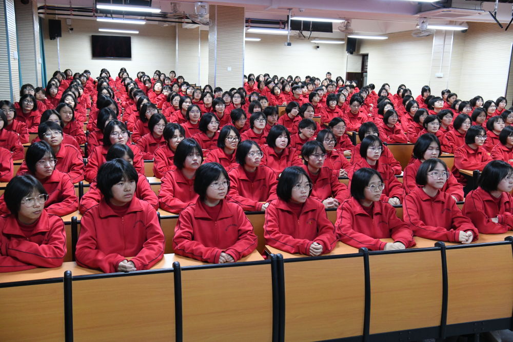 華坪女高學(xué)生認(rèn)真收聽收看國家主席習(xí)近平發(fā)表二〇二六年新年賀詞。(麗江融媒記者 趙慶祖 攝)