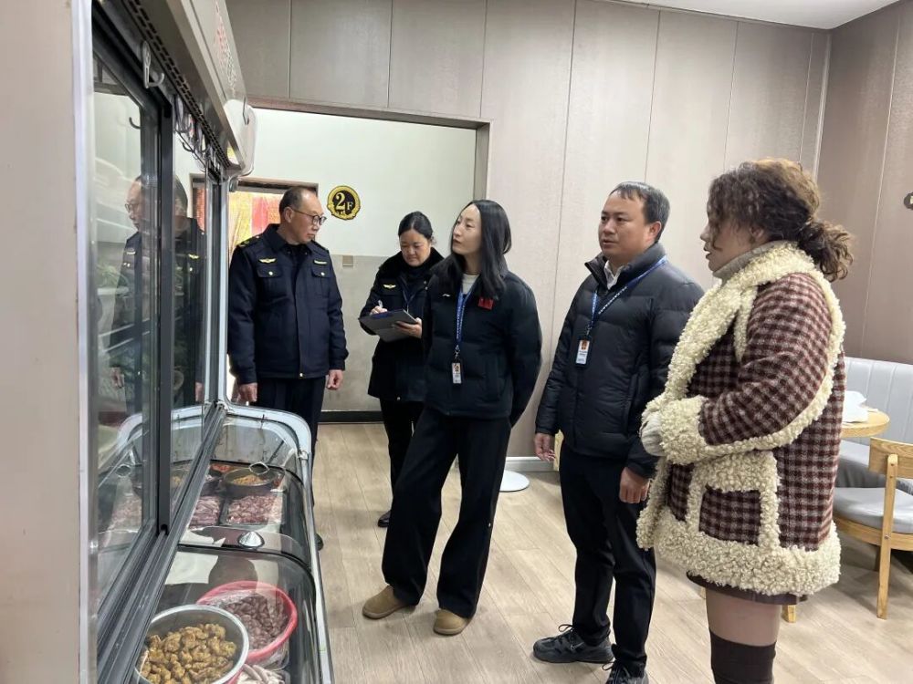 曾火平(右二)與同事到永北鎮(zhèn)餐飲店檢查食品安全情況。(通訊員 萬(wàn)志菊 攝)