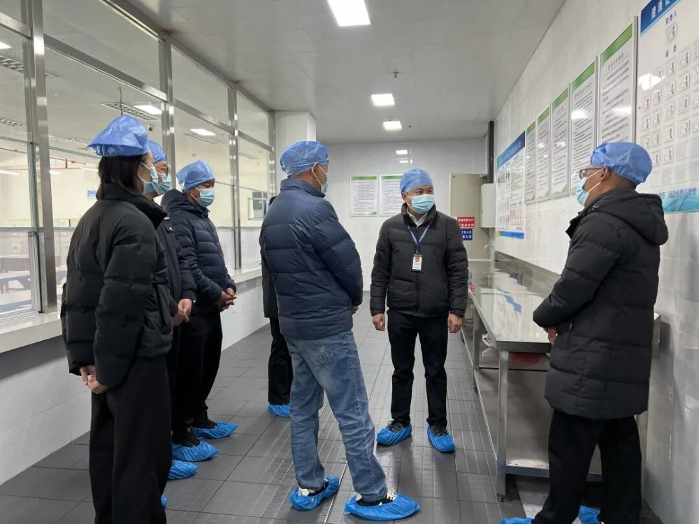 曾火平(右二)與同事在永北鎮(zhèn)中學(xué)學(xué)生食堂檢查食品安全情況。(通訊員 萬(wàn)志菊 攝)