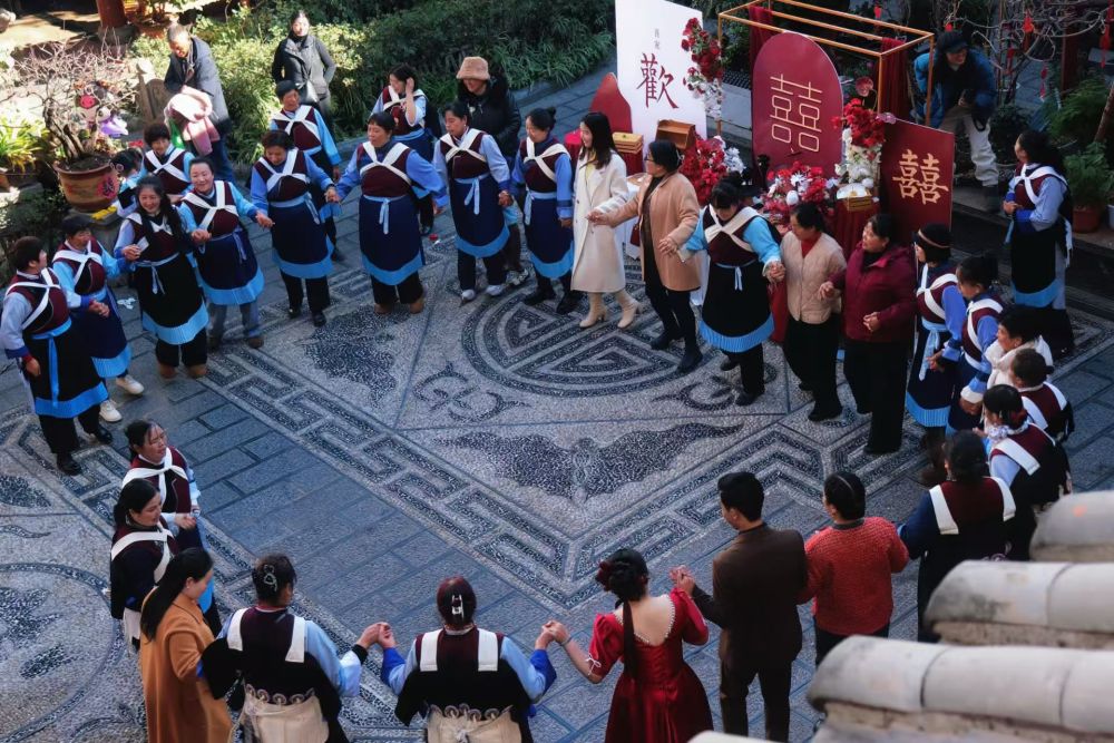 ?;凵鐓^(qū)新人婚禮打跳。(社區(qū)供圖)