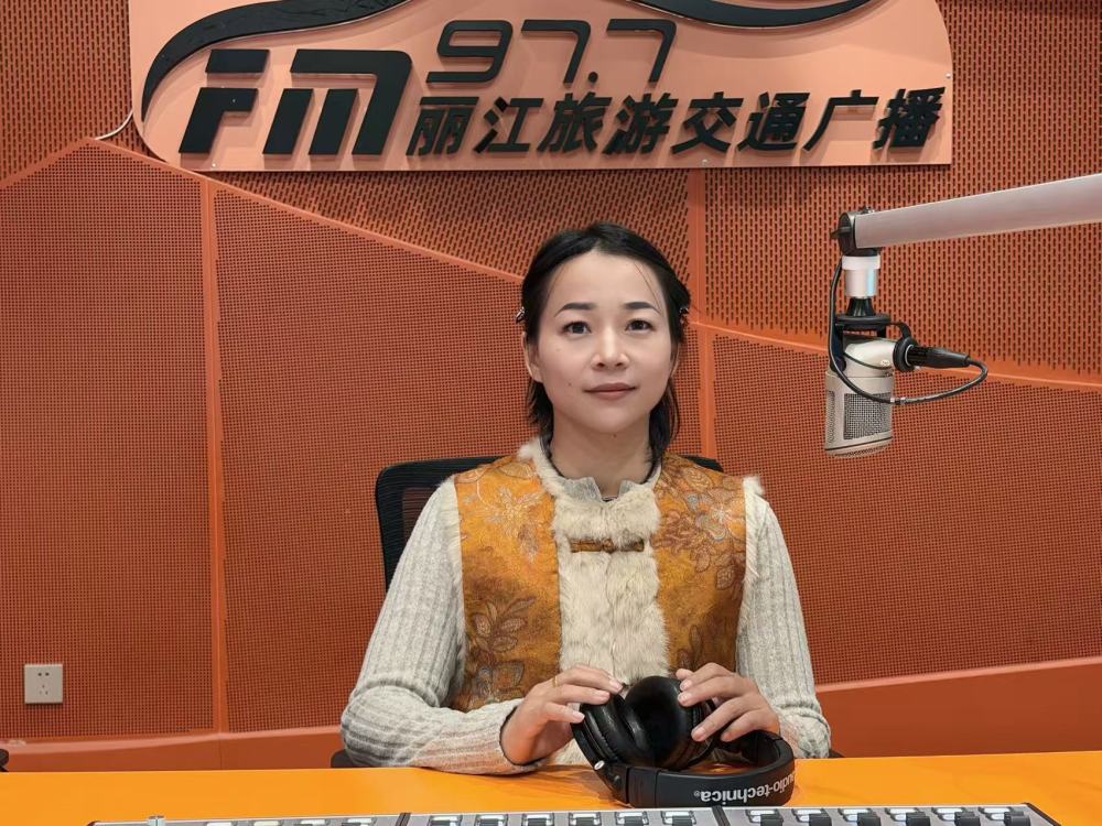 1月29日,?;凵鐓^(qū)居委會(huì)黨委委員、社區(qū)紅白理事會(huì)“文明管家” 劉英 走進(jìn)FM97.7麗江旅游交通廣播直播間。(麗江融媒記者 徐蕾攝)