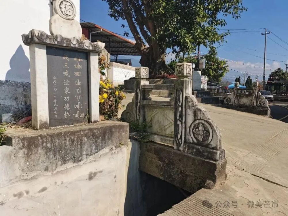 這份好奇心如心底“住了一只花貍貓”,時(shí)時(shí)“撓”著讓人欲罷不能。終于在一個(gè)軒崗太陽最烈的午后,我搭上李醫(yī)生的二輪摩托,從芒茂繞至拉門,自下四寨走到上四寨,一寨一訪、一路一看,總算揭開了石碑的謎底——我猜對了一半,這些石碑并非依路而建,而是傍水而立、伴橋而生,既是記錄善舉的豐功碑,更是承載傣族“筑橋修路”傳統(tǒng)儀式的文化載體。