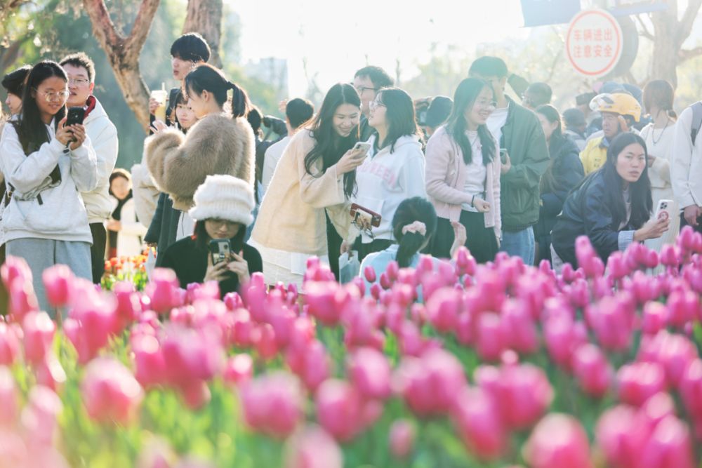 眾多市民游客前來賞花。高吳雙 攝