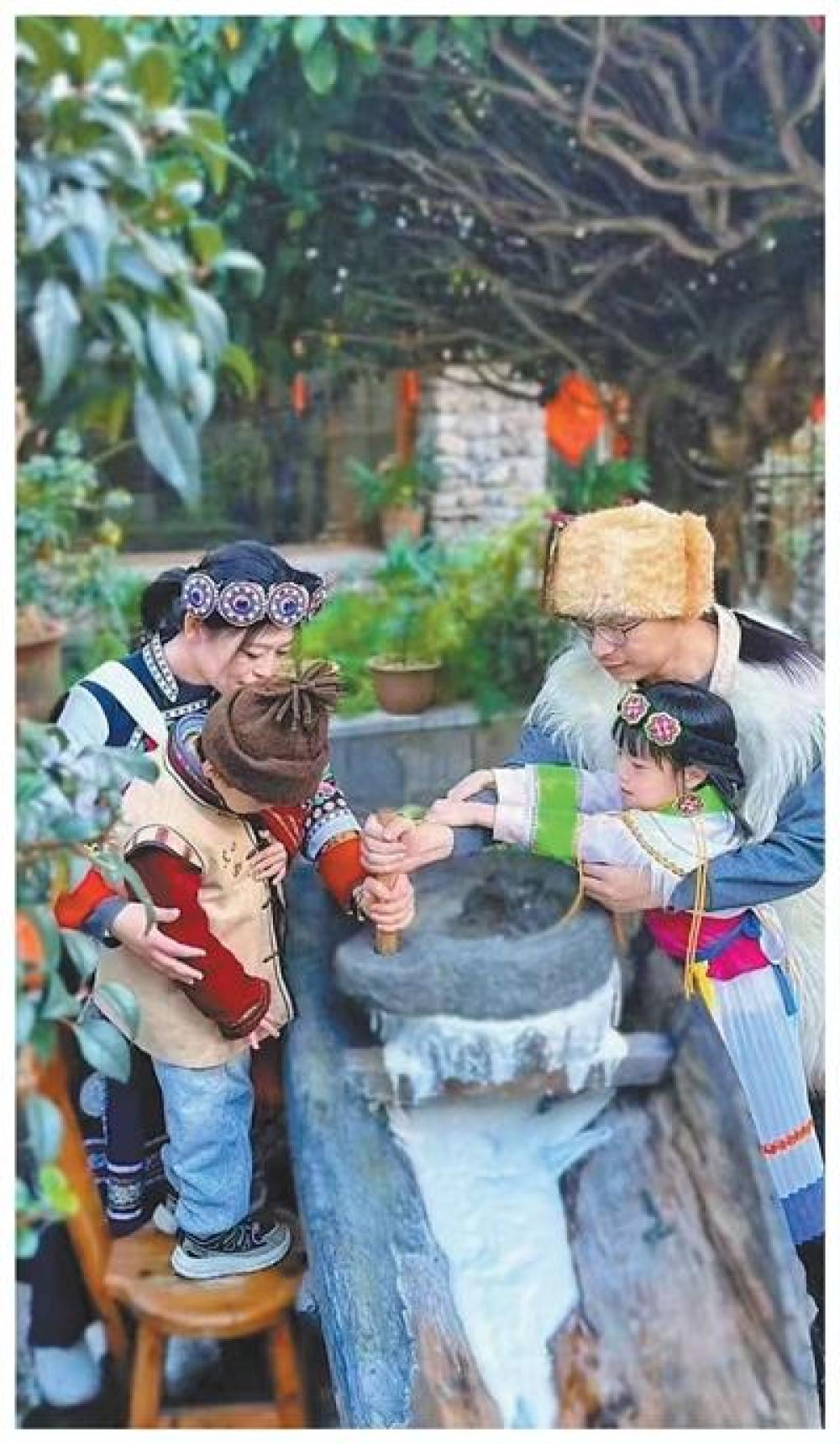考慮到村里已有民宿酒店和餐館等業(yè)態(tài),村民和杰林另辟蹊徑,在家里建起了東巴文化體驗館,游客可以在這里沉浸式體驗制作東巴紙、磨豆花等納西族群眾日常生產(chǎn)活動,感受東巴文化。