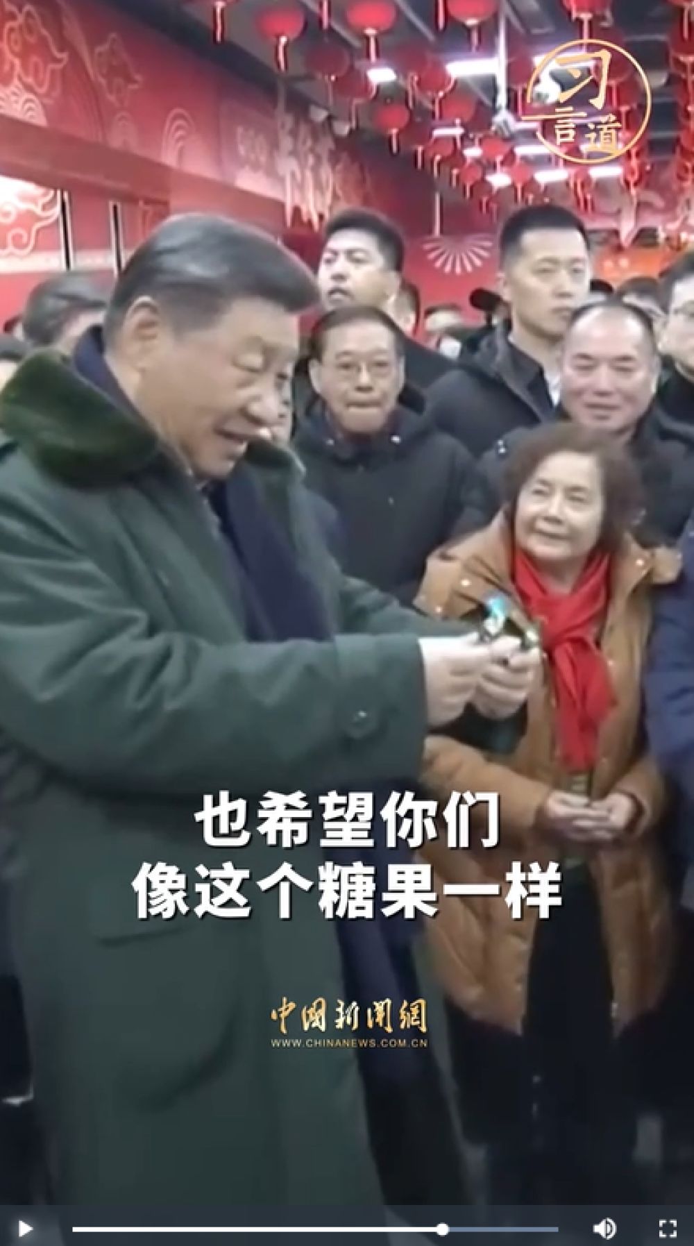 每逢春節(jié)前夕,總書記都會走到基層、百姓中間。在天津古文化街,總書記掏錢買麻花作為見面禮,送給身旁的小朋友,說“送你一份麻花”;在遼寧,總書記接下孩子們遞來的糖果,親切地說,你們的糖我收下,吃了你們的糖心里很甜。一個個親切有愛的感人畫面,充滿了溫情,傳遞著感動。