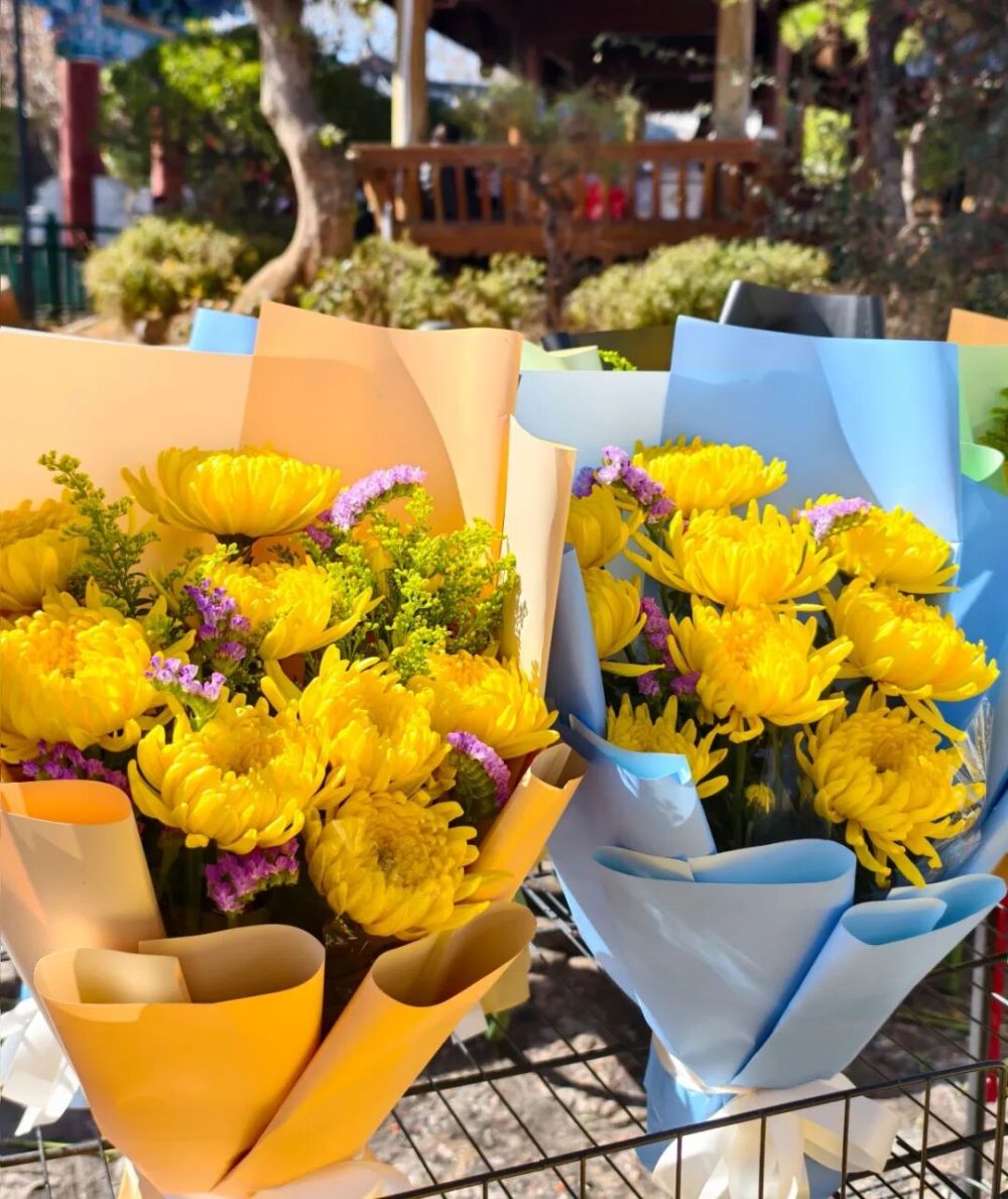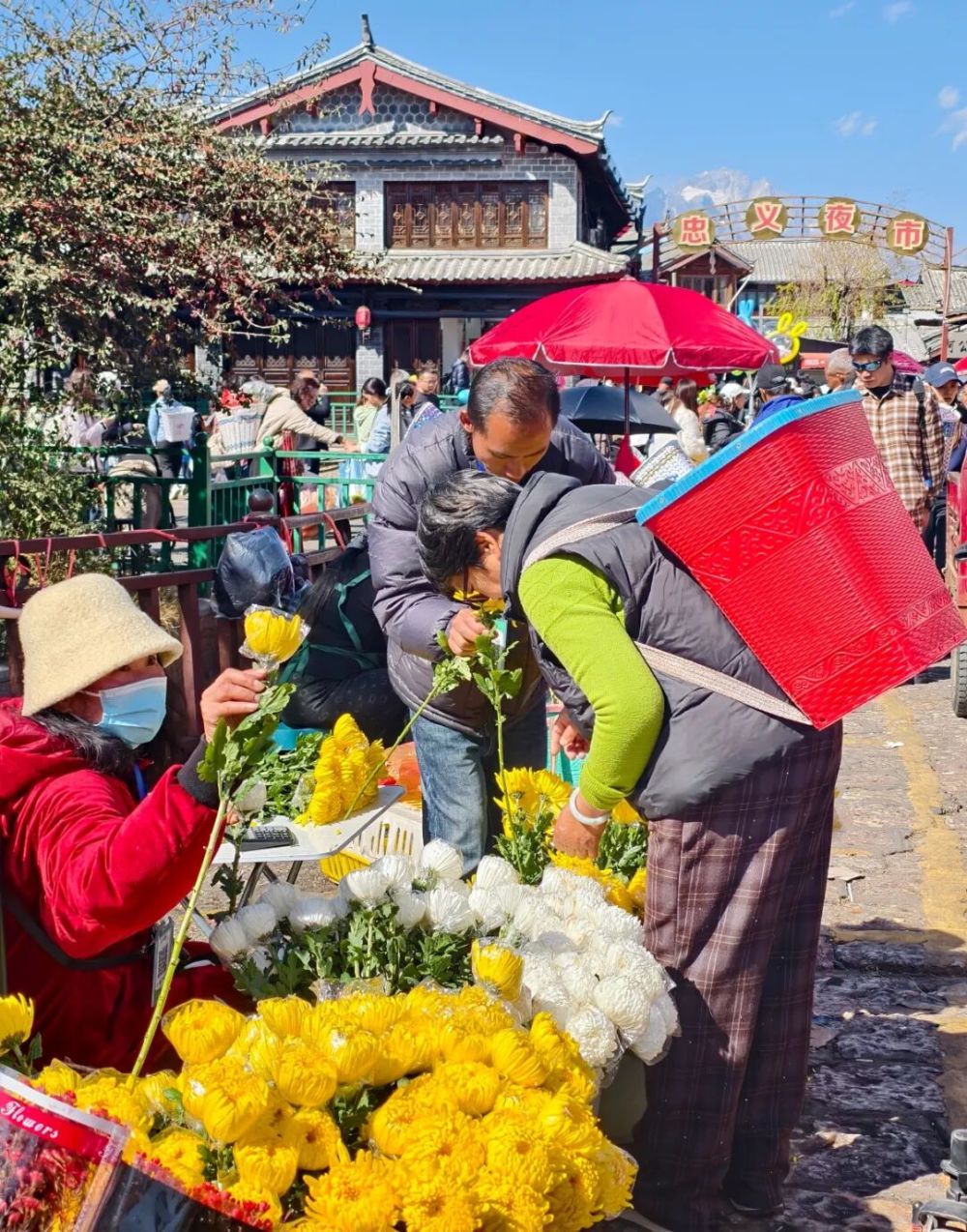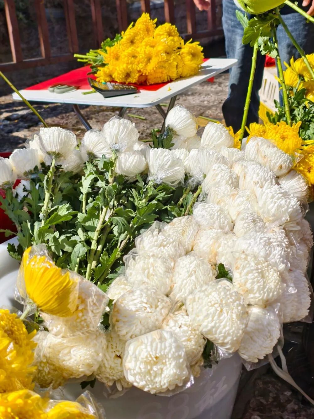 黃菊、白菊等素雅花材備受青睞。(麗江融媒記者 李琳 攝)
