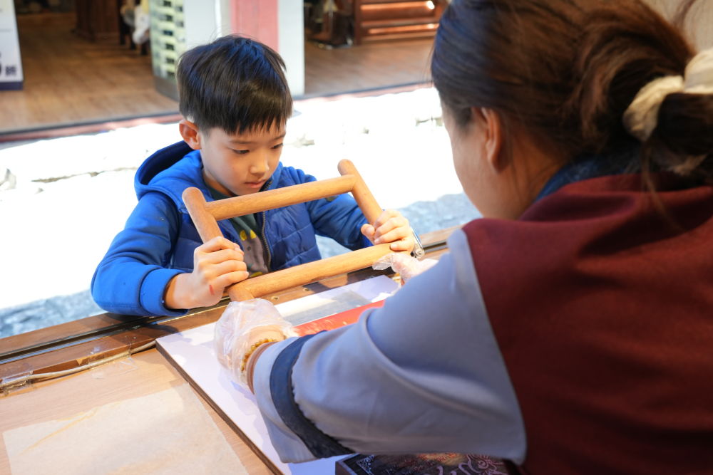 朱砂上色、木版拓印,在國(guó)圖·麗江禮物新義店,非遺東巴拓印體驗(yàn)成為新春的熱門打卡項(xiàng)目。“這幅畫代表馬年吉祥,紅色顏料用的是朱砂?!眮碜运拇ǔ啥嫉男∨笥烟企霞卧诠ぷ魅藛T的耐心指導(dǎo)下,正專注地進(jìn)行東巴拓印,親手將“馬年吉祥”的美好祝福,印在獨(dú)具特色的東巴紙上。“我剛剛用東巴紙做了拓印,它的意思是馬年吉祥,挺有意思的,也祝大家新年快樂?!碧企霞伍_心地說。