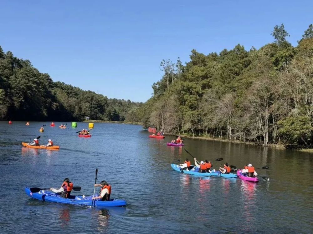 皮劃艇泛舟,探秘湖光。(圖源:磨盤山森林公園)