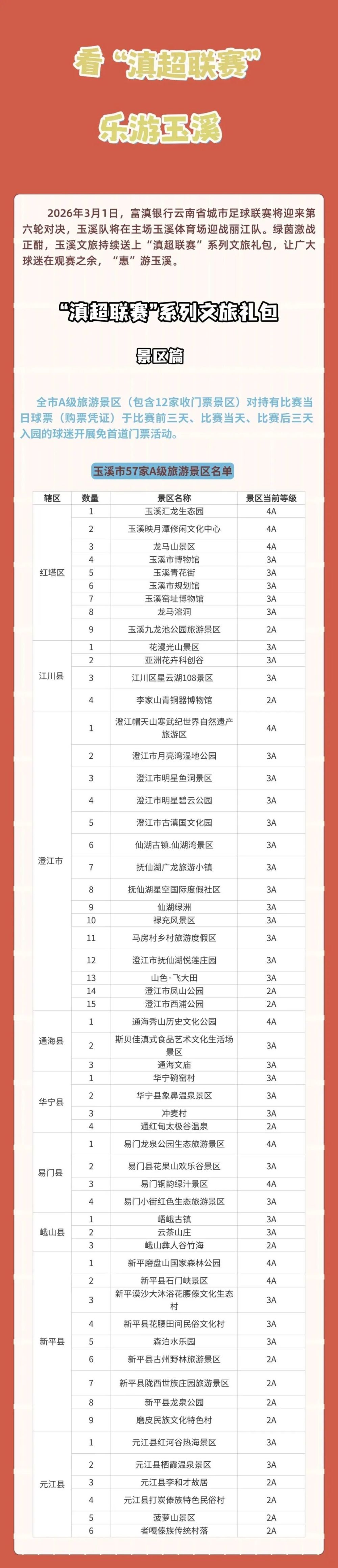 注:玉溪文旅送上“滇超聯(lián)賽”系列文旅禮包的相關(guān)優(yōu)惠內(nèi)容整理自“玉溪文旅”微信公眾號。
