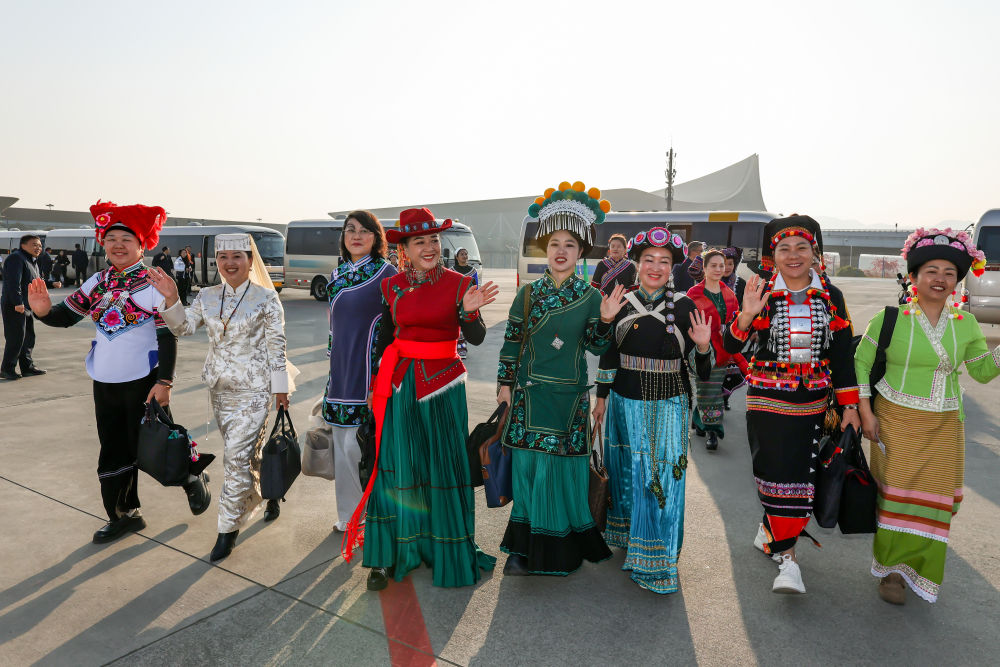 楊小華(右三)和代表們參加全國兩會。(受訪者供圖)