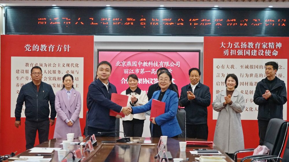 麗江市一中負責人與北京燕園中教科技有限公司負責人進行簽約。(麗江融媒記者 李琳 攝)