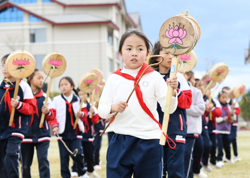 小學生們跳勒巴舞。(麗江融媒記者 趙慶祖 攝)