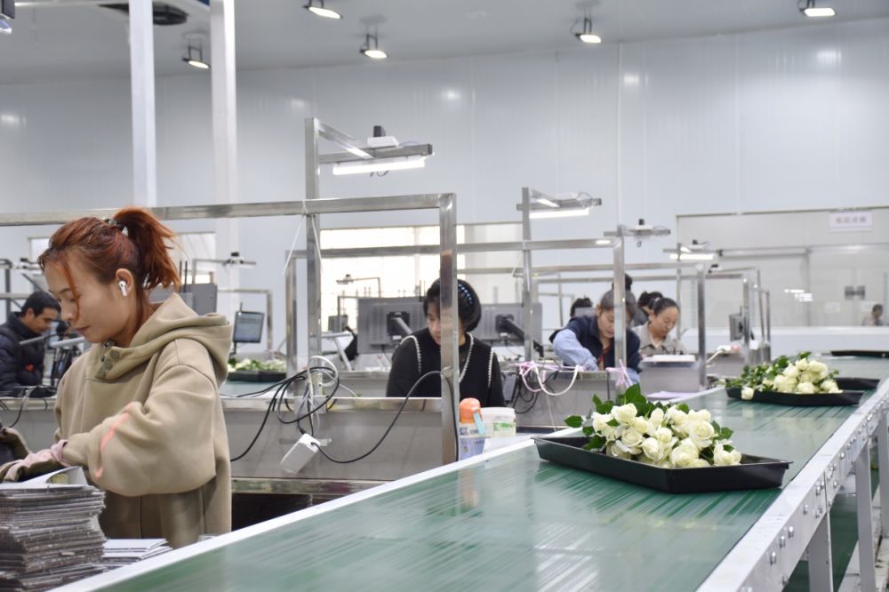 和國珍告訴記者,過去一年,園區(qū)變化十分顯著。鮮花品種更豐富、品質(zhì)更上乘,訂單不僅遍布全國各大城市,還遠銷海外。去年引進的自動化生產(chǎn)設備,讓包裝效率實現(xiàn)翻倍。“從前手工包裝一天最多300多份,如今日均能達700多份,收入也增加了一倍多,干勁更足了?!焙蛧湔f。