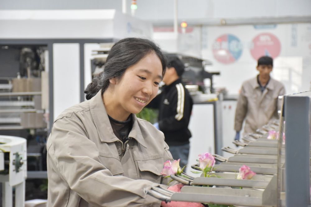 從包裝車間的一枝花,到飄洋過海的大產(chǎn)業(yè);從和國珍一家的增收,到全村人的幸福,麗江現(xiàn)代花卉產(chǎn)業(yè)園的故事正生動上演。這座占地1100畝的園區(qū),建有35萬平方米智能溫室,種植48個玫瑰品種、18個彩色馬蹄蓮品種,累計選育111個新品種,6個實現(xiàn)規(guī)模化種植。自2020年8月投產(chǎn)以來,鮮花銷售總量已突破1.5億枝,去年一年產(chǎn)出4234萬枝鮮花,產(chǎn)值達6018萬元。