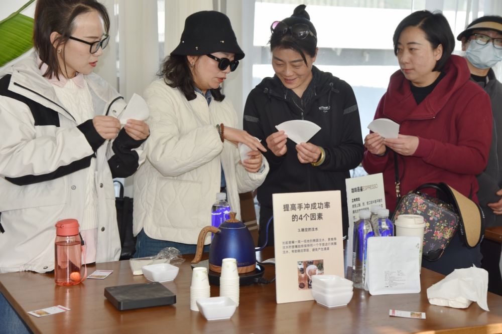 活動在黃山鎮(zhèn)文筆村楸庭民宿溫情開啟。專業(yè)咖啡師現(xiàn)場進行咖啡沖泡教學,從咖啡豆甄選、精細研磨到科學萃取、手法把控,逐一細致講解并示范操作。職工們認真聆聽、動手實踐,在濃郁醇香中慢享時光,舒緩日常工作壓力,感受生活中的美好與詩意。