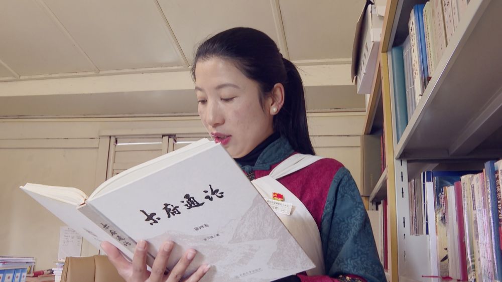和茂蝶在閑暇之余認(rèn)真學(xué)習(xí)《木府通論》。(麗江融媒記者 木雯嬌 攝)