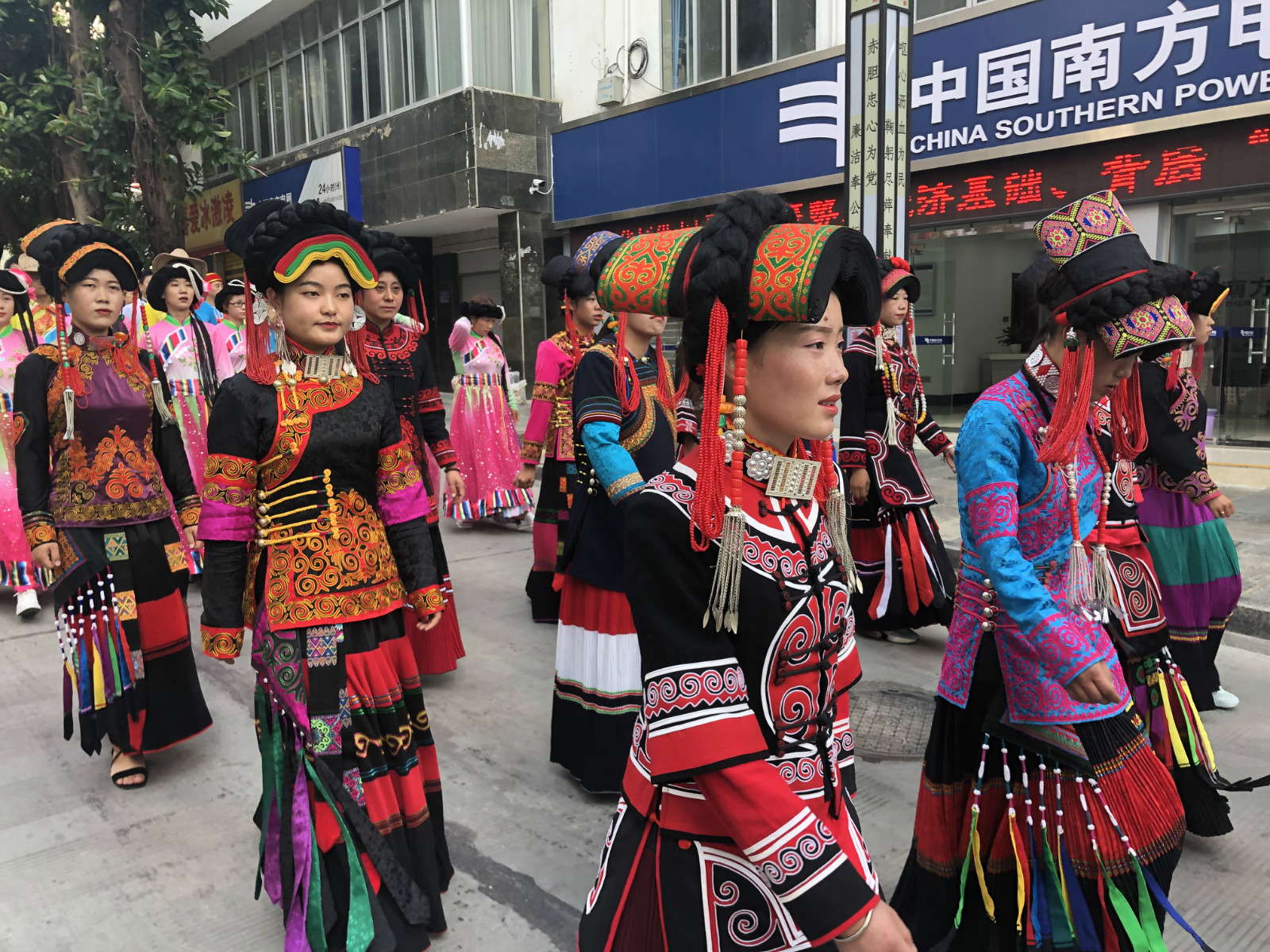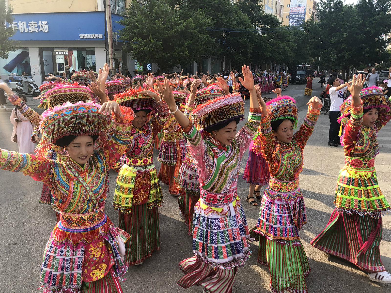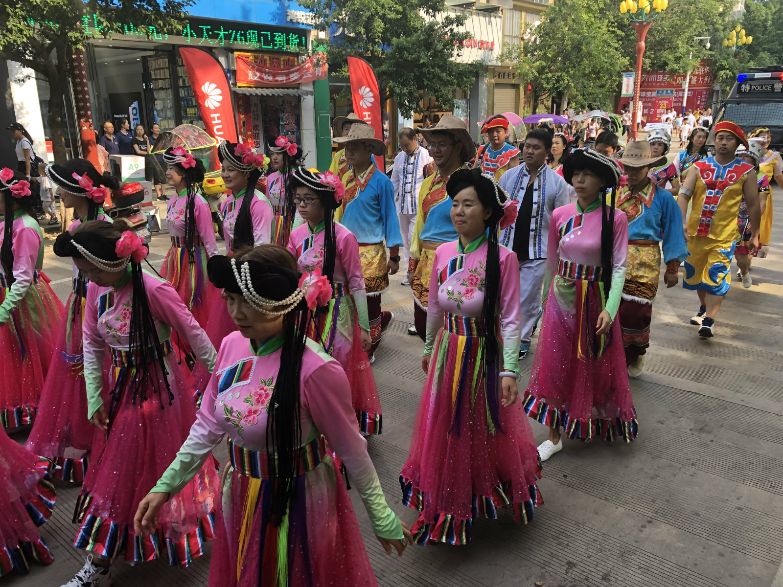 9時,為期兩天的民族服飾游街巡展在文體中心閃亮登場,開始巡演活動。此次民族服飾巡展,華坪縣組織了近300人陣容的表演隊。演員們身穿傈僳族、彝族、傣族、苗族、彝族水田人、納西族摩梭人等民族服飾,為芒鄉(xiāng)帶來了一場別具一格、美輪美奐的視覺盛宴和文化大餐。