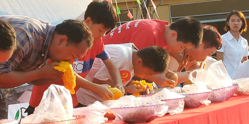 隨著主持人一聲口令,霎時(shí)間整個(gè)現(xiàn)場(chǎng)“炸開(kāi)了鍋”,“吃芒果”比賽開(kāi)始了。
