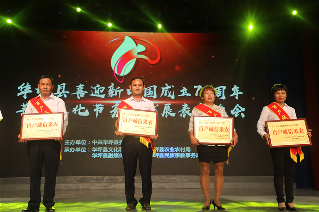 晚會(huì)現(xiàn)場還為百戶誠信果農(nóng)的十位代表、十大最美果園園主、十佳經(jīng)營主體的單位頒獎(jiǎng)。