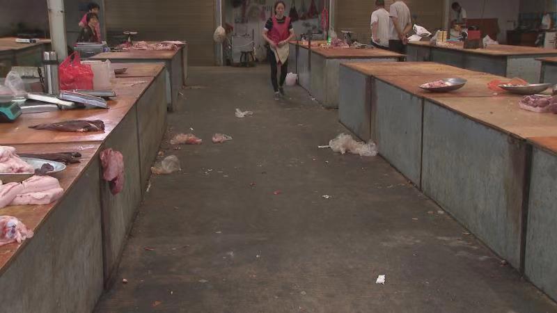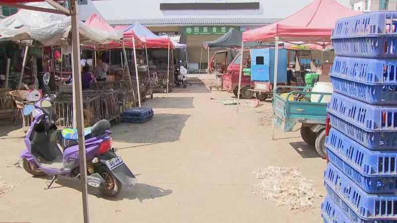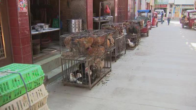 活禽交易區(qū)畜禽羽毛直接地面晾曬,商家占道經(jīng)營,衛(wèi)生情況差;