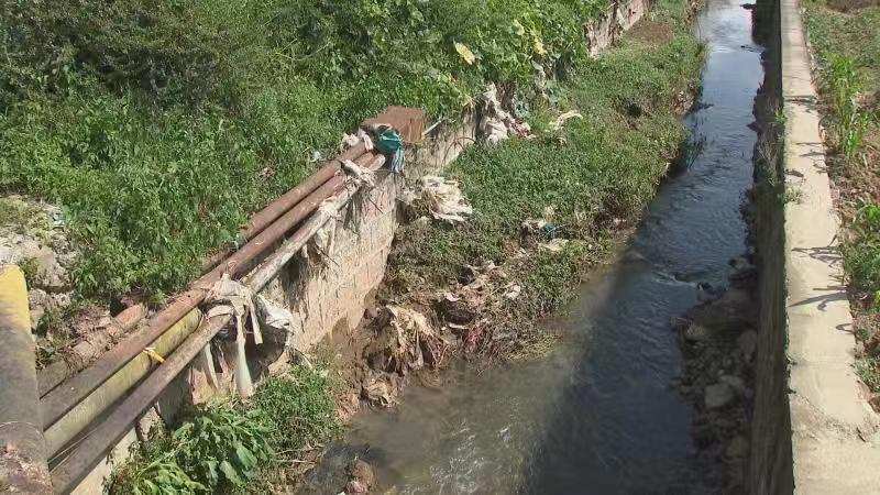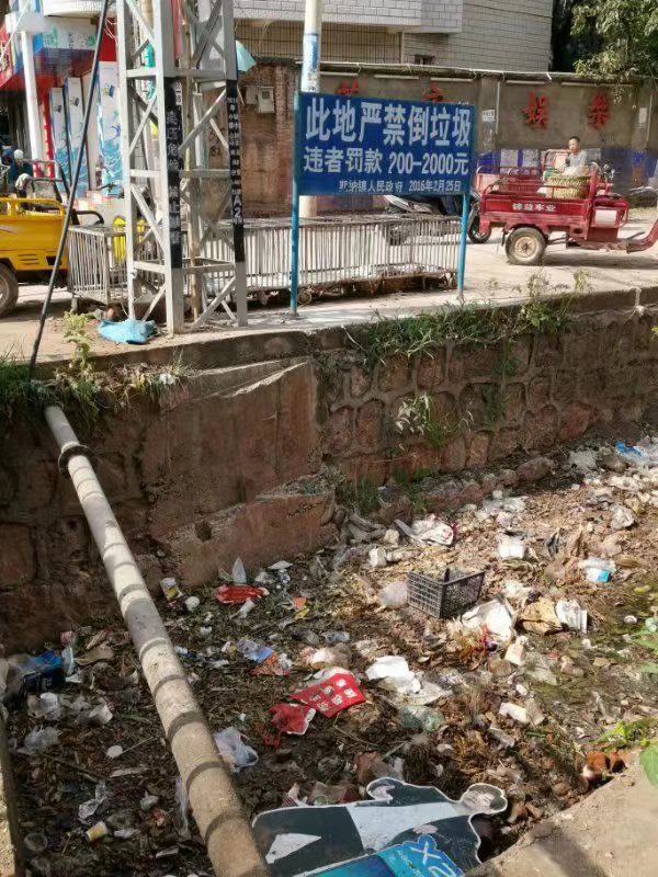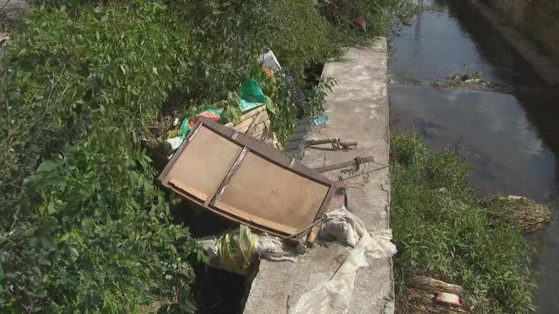 期納鎮(zhèn)政府旁的期納河河道內(nèi),垃圾亂堆亂放,污水亂排亂放污染河道;