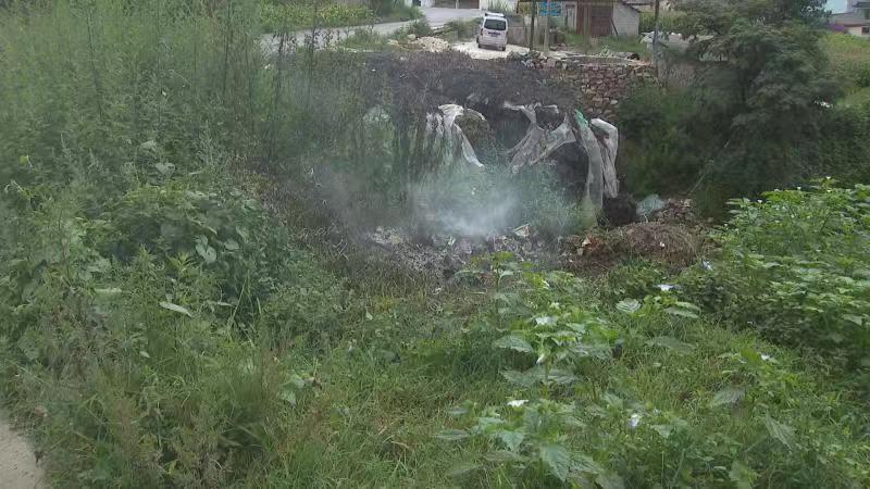 在有垃圾收集箱的情況下,中和村委會亂丟亂放,就地露天焚燒;