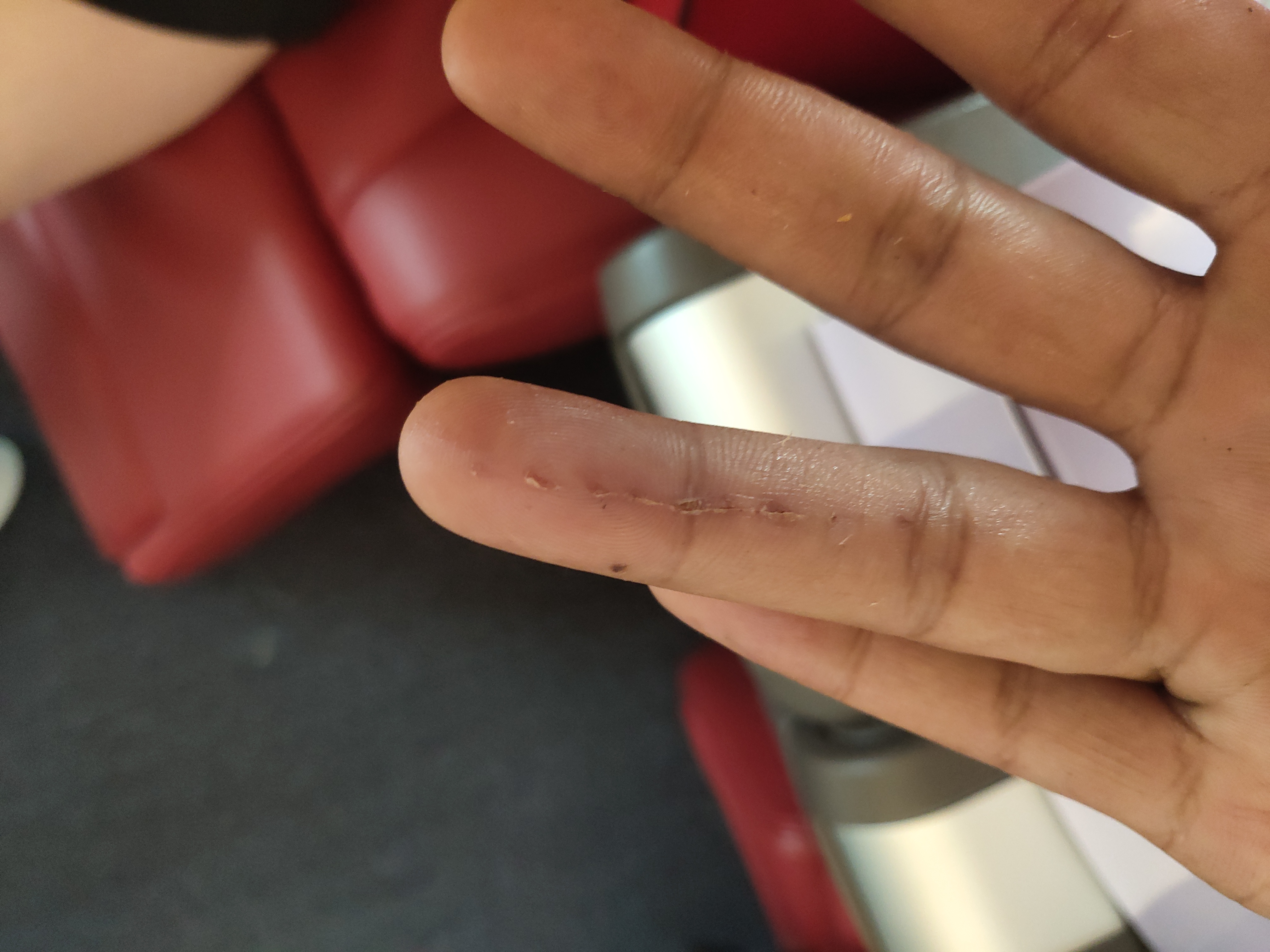 “我的左手前幾天受傷,還在包扎著,救人后已經(jīng)被水完全浸濕了,右手的食指不知道什么時候有一層皮也被劃開了,但都是皮外傷。”救援結束后,曹濤發(fā)現(xiàn)自己的手已經(jīng)受傷了。