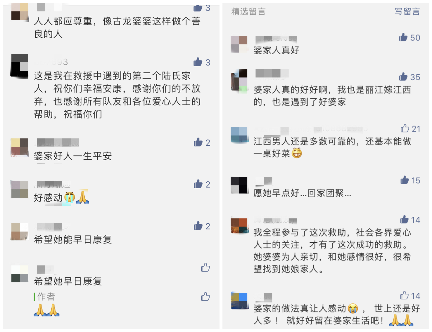 事件一經(jīng)報(bào)道,引發(fā)社會廣泛關(guān)注。很多網(wǎng)友對姑娘的遭遇表示了同情,同時也希望她能盡快找到家人,也對陳古龍婆婆的做法表示贊揚(yáng)。新聞的最后,陳古龍的婆婆想通過媒體尋找她的麗江娘家人。但是事情過去三天,平臺尚未收到任何關(guān)于陳古龍娘家人的消息或者線索,經(jīng)過記者多方輾轉(zhuǎn)聯(lián)系,今天終于聯(lián)系上了陳古龍戶口所在的村委會。