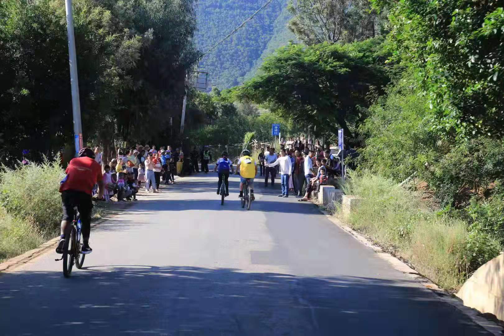 隨著信號(hào)槍的打響,以綠色環(huán)保低碳健康為宗旨的永勝縣第三屆“程海之約”自行車賽火熱開賽。一路上,選手們已經(jīng)汗流浹背,但依舊在朝著終點(diǎn)前進(jìn)。路邊村民紛紛為路過的選手加油鼓勁。