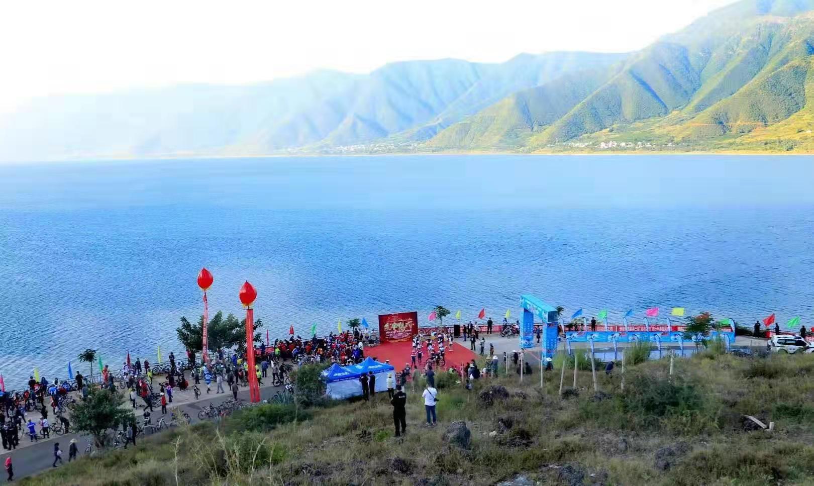 10月20日上午,2019年永勝縣第三屆“程海之約”自行車賽在美麗的程海湖邊拉開序幕,共228名參賽選手參加比賽。