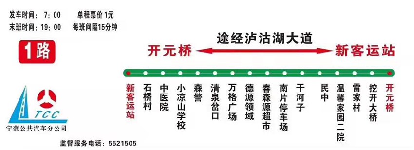 待瀘沽湖大道改擴建投入使用,將正式開通1路城市公交線路,途經(jīng)瀘沽湖大道,全程20公里,以新客運站為中心,分兩段運行,共23個站點:①新客運站-唐家堡堡-莊房-干壩子-辣子洞-中梁子-梨園-硝水坪;②新客運站-石橋村-中醫(yī)院-小涼山學校-森警-清泉岔口-萬格廣場-德源領(lǐng)域-春森源超市-南片停車場-干河子-民中-溫馨家園(二院)-雷家村-挖開大橋-開元橋。