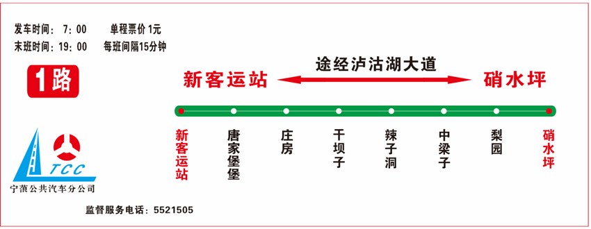 全程21公里,以新客運站為中心,分兩段運行,共22個站點:①新客運站-電子商務-莊房-干壩子-辣子洞-中梁子-梨園-硝水坪;②新客運站-上仁河-小康家園三期東岔口-李家村(清泉)-途經(jīng)寧蒗劇院(李家村新大橋)-萬格廣場-德源領(lǐng)域-春森源超市-南片停車場-干河子-民中-溫馨家園(二院)-雷家村-挖開大橋-開元橋。