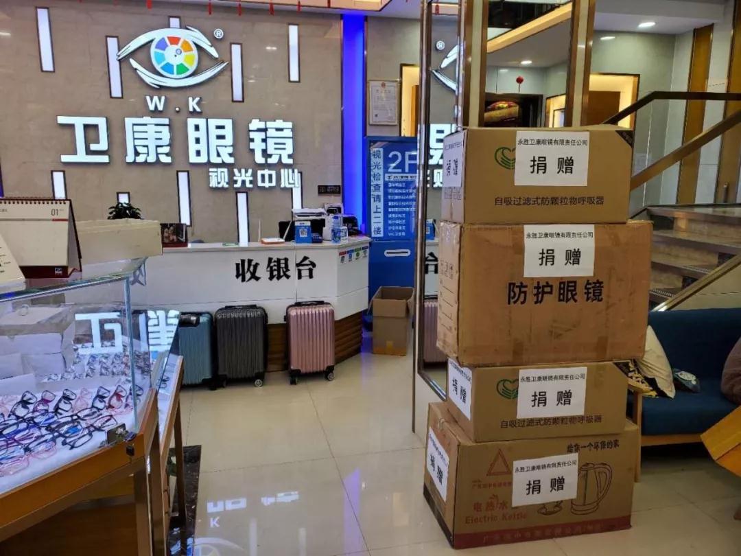 1月31日,永勝衛(wèi)康眼鏡有限責(zé)任公司分別在永勝、寧蒗、賓川三個縣的地方門店共免費(fèi)發(fā)放了1萬只口罩和4370副防護(hù)眼鏡;2月1日,永勝衛(wèi)康眼鏡有限責(zé)任公司向永勝縣醫(yī)院捐贈500個KN90口罩、190副防護(hù)眼鏡,向永勝縣衛(wèi)生健康局捐贈800個KN90口罩、180副防護(hù)眼鏡。