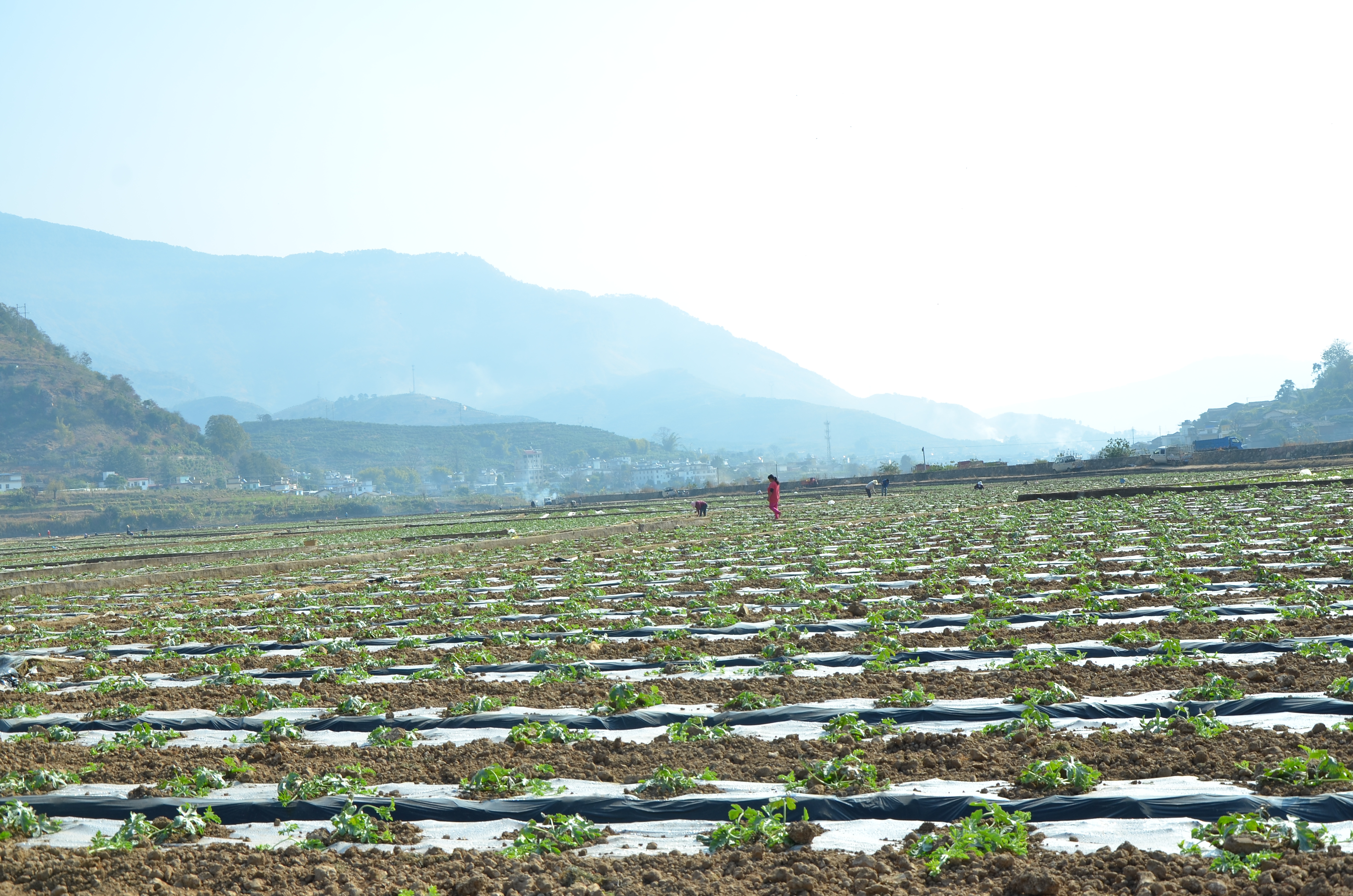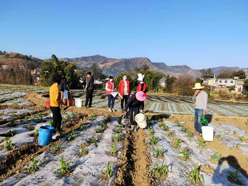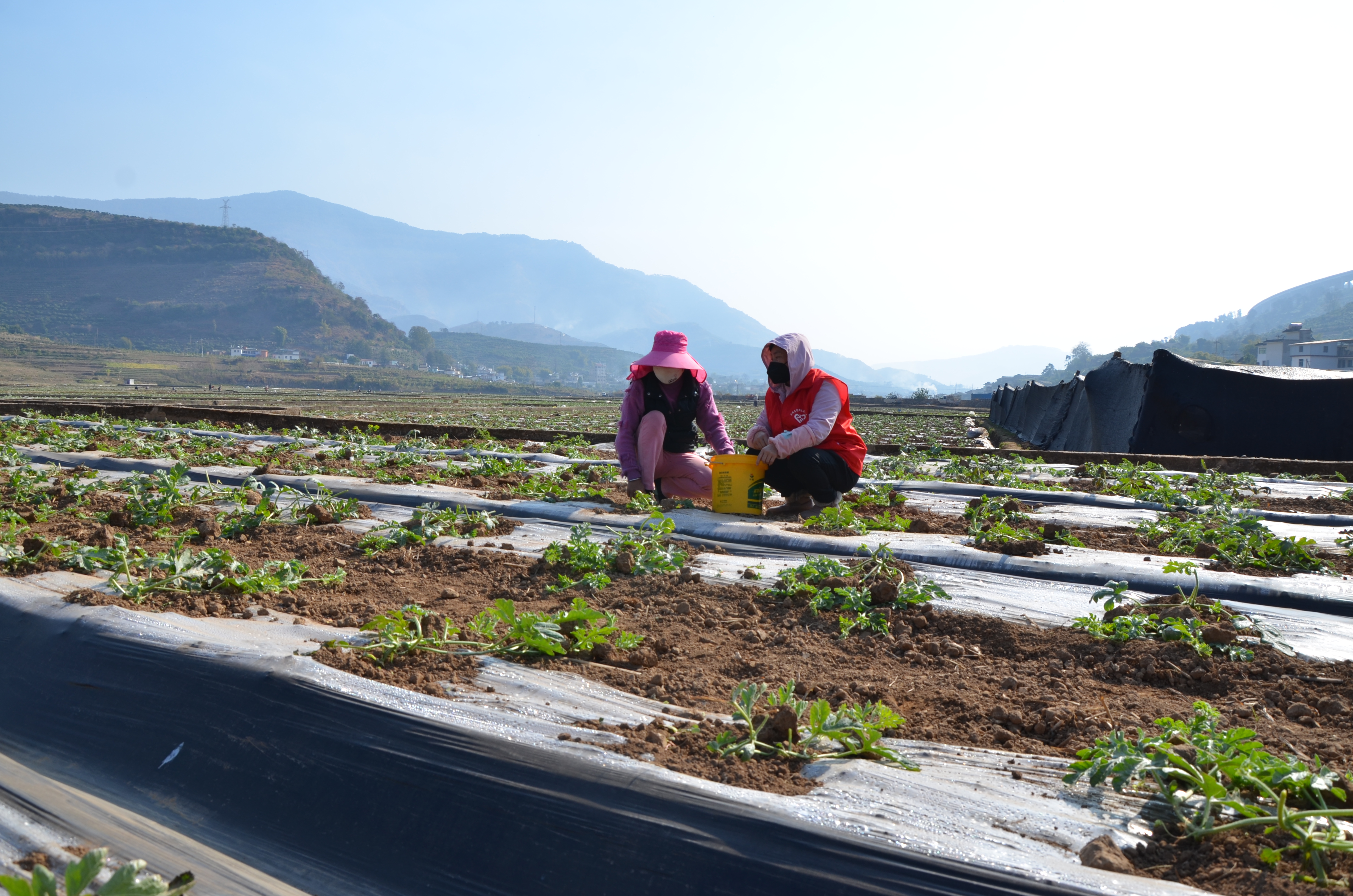 2月7日,華坪縣新莊鄉(xiāng)農(nóng)業(yè)綜合服務中心的高級農(nóng)藝師唐紹華正在西瓜地里作技術(shù)指導?!澳壳笆墙o西瓜修枝、施肥的時候,往年都要集中人員進行西瓜栽培技術(shù)培訓。今年根據(jù)疫情防控的要求沒法舉辦集中培訓,現(xiàn)在主要通過微信和電話給西瓜種植戶答疑解惑,實在解決不了的特殊情況我們就定點上門指導服務。往年這個時候,連片的西瓜地里到處是三個一群、五個一伙勞動的群眾,今年卻看不到“扎堆”的情況,大家的防疫意識還是比較高的?!碧平B華說。