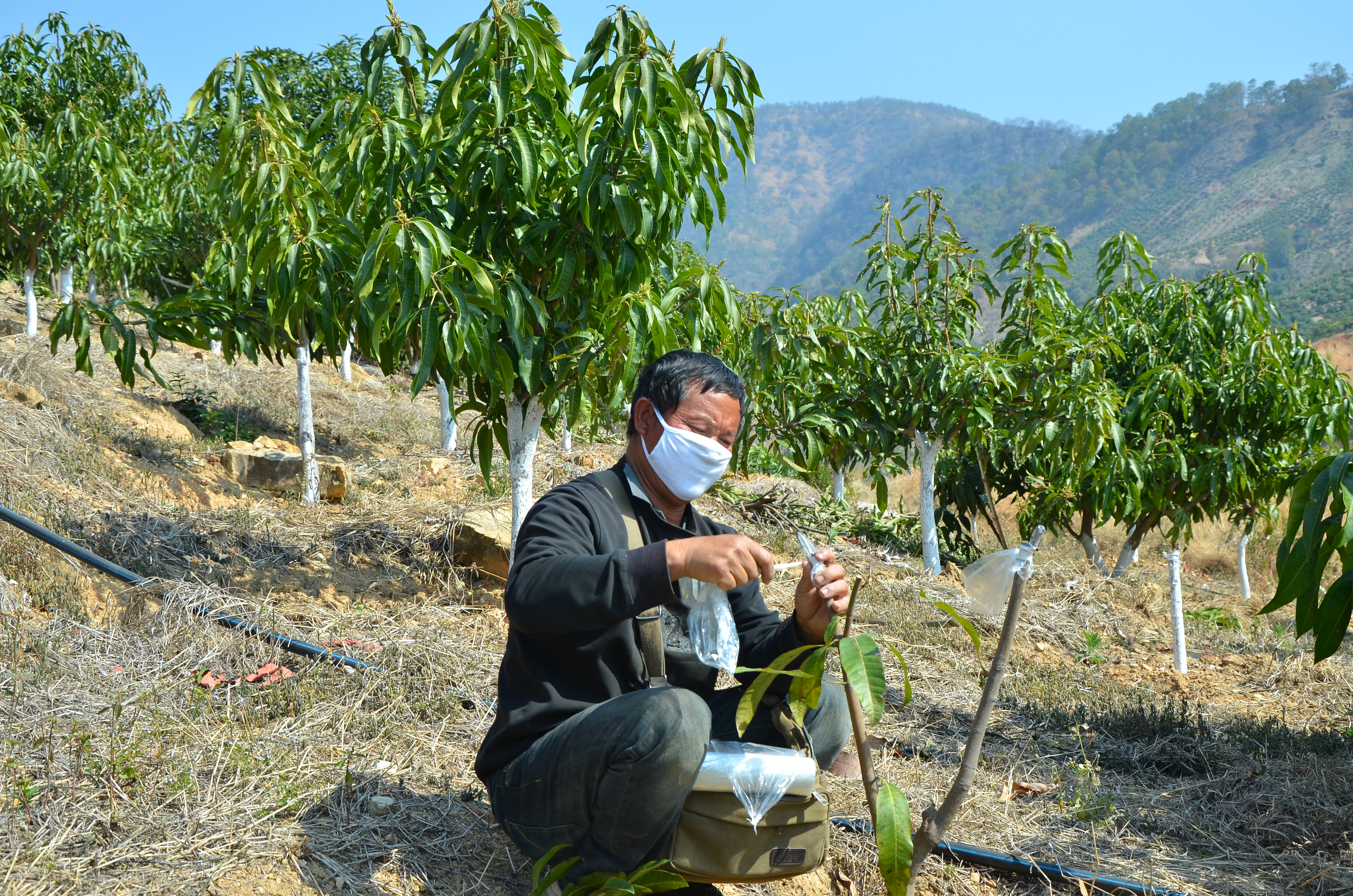 張昌明帶著口罩嫁接芒果