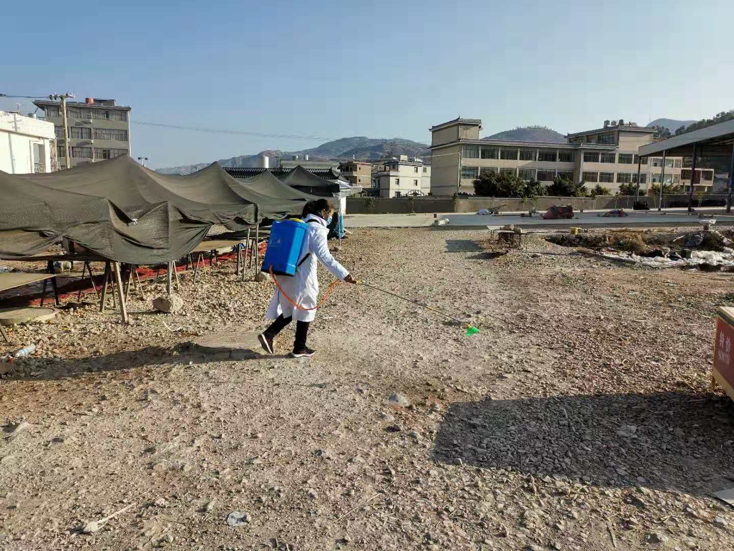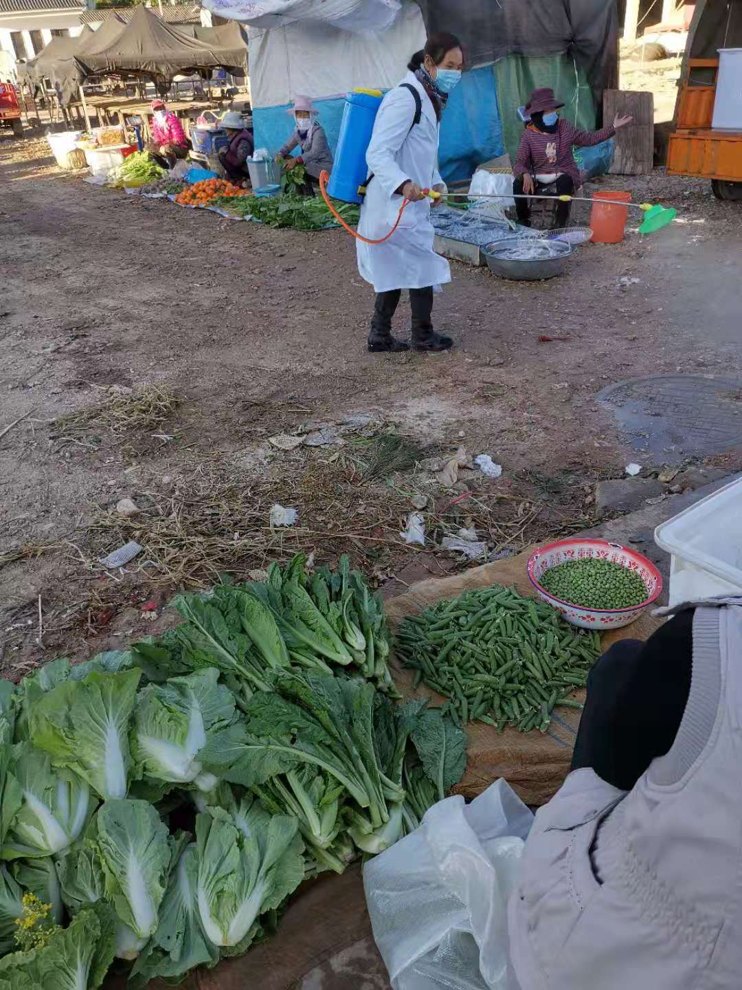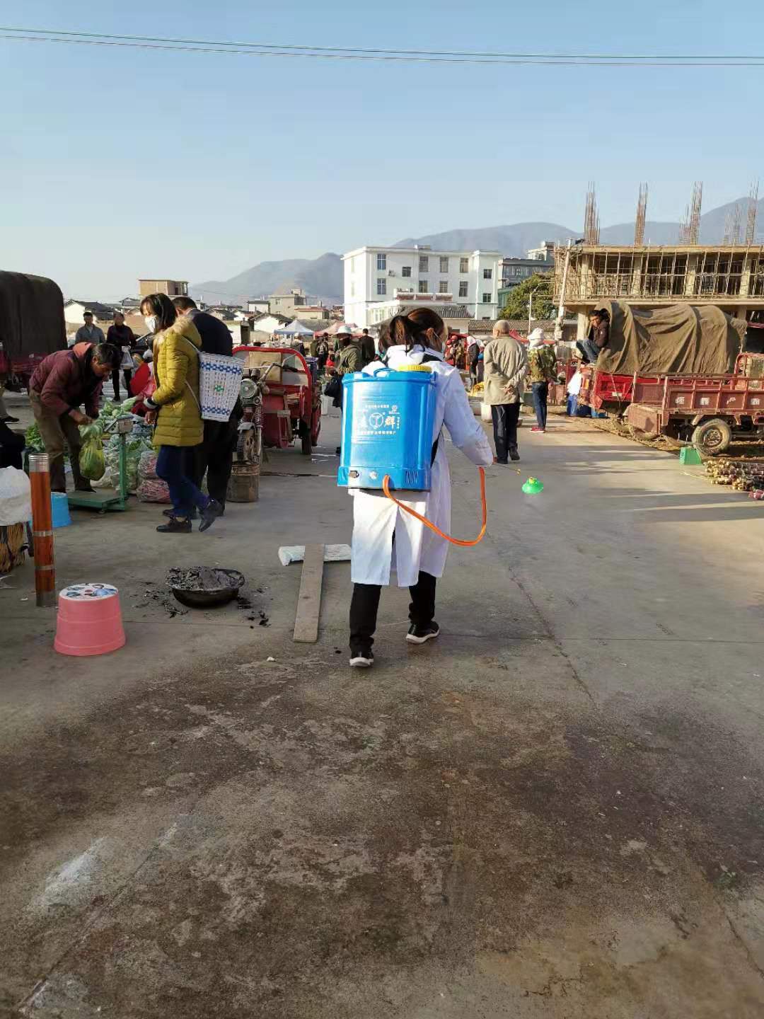 自新冠肺炎疫情防控工作開(kāi)展以來(lái),在永勝縣程海農(nóng)貿(mào)集市上,每天清晨,人們都能看到一個(gè)身穿白大褂背著消毒藥桶對(duì)街市各個(gè)角落噴灑消毒液的身影,對(duì)這個(gè)熟悉的身影,大家親切的稱她為“劉醫(yī)生”。