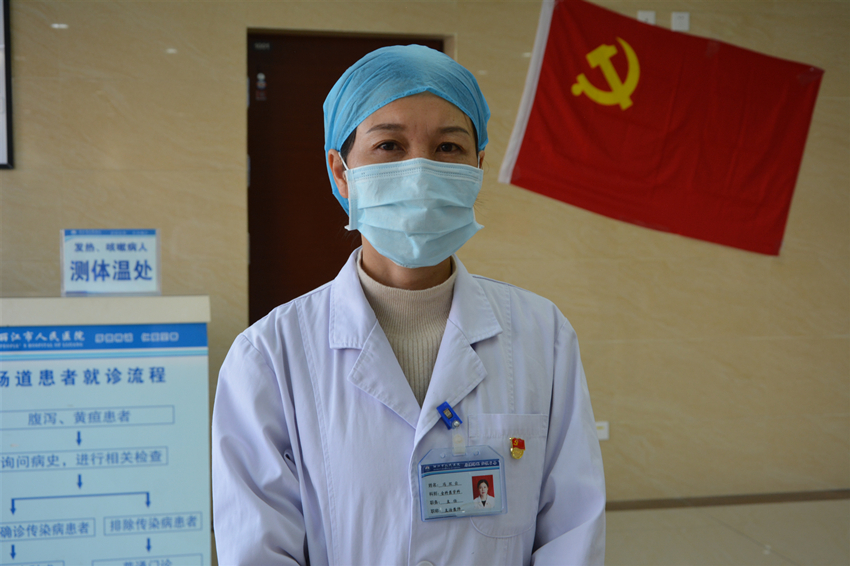 馮雙云有著16年的醫(yī)齡,同時(shí)也是一名老黨員。她覺(jué)得既然選擇了這份職業(yè),就應(yīng)該擔(dān)起這份責(zé)任?!白龊帽砺?,工作中時(shí)刻不忘記自己是一名黨員,也是一名普通醫(yī)務(wù)工作者,認(rèn)真對(duì)待每一位病人,不遺漏一個(gè)疑似患者”。
