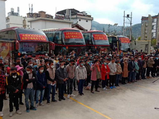 繼多批務工人員乘專機、專列、專車遠赴省外務工后,3月4日,全市329名務工人員(其中古城區(qū)6人、玉龍縣13人、永勝縣137人、華坪縣23人、寧蒗縣150人),乘坐10輛免費專車前往溫州市甌海區(qū)務工。本次赴甌務工是麗江市與溫州市及溫州市甌海區(qū)建立勞務協(xié)作合作關(guān)系以來,首批集中前往溫州市甌海區(qū)的返崗務工人員。