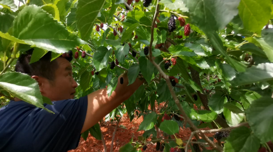 “春光明媚晴方好,正是桑海品葚時”?!稑废砩睢窓谀拷M來到華坪縣船房鄉(xiāng)華榮村,6000多畝的桑樹迎風(fēng)而立,一串串紫黑色桑果壓彎了枝頭,讓人賞心悅目、垂涎欲滴。