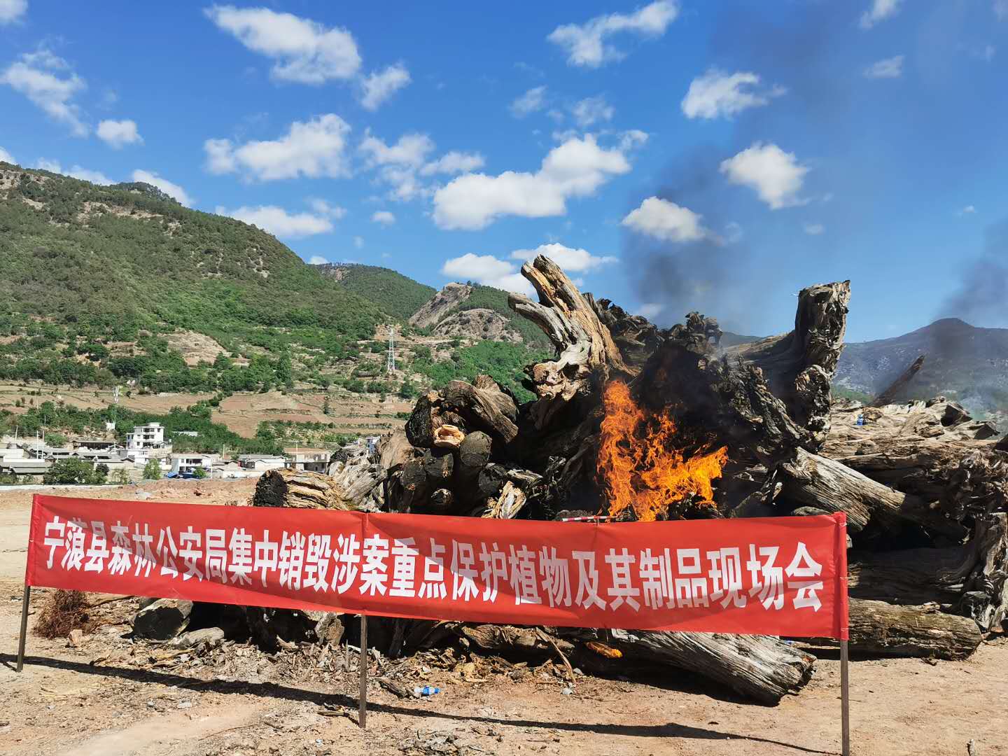 日前,寧蒗縣森林公安局在縣城阿家壩垃圾場召開現(xiàn)場會,對近年來辦案過程中依法收繳的國家重點保護植物及其制品按照相關規(guī)定進行集中焚燒銷毀。