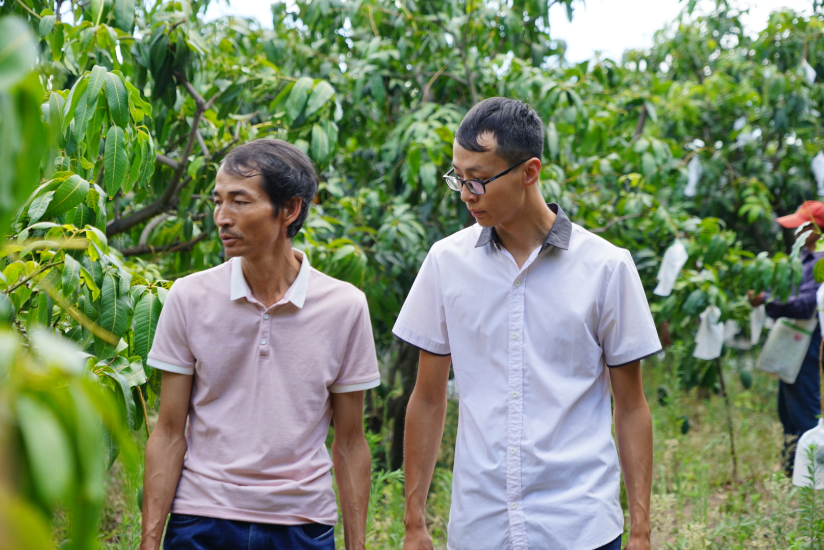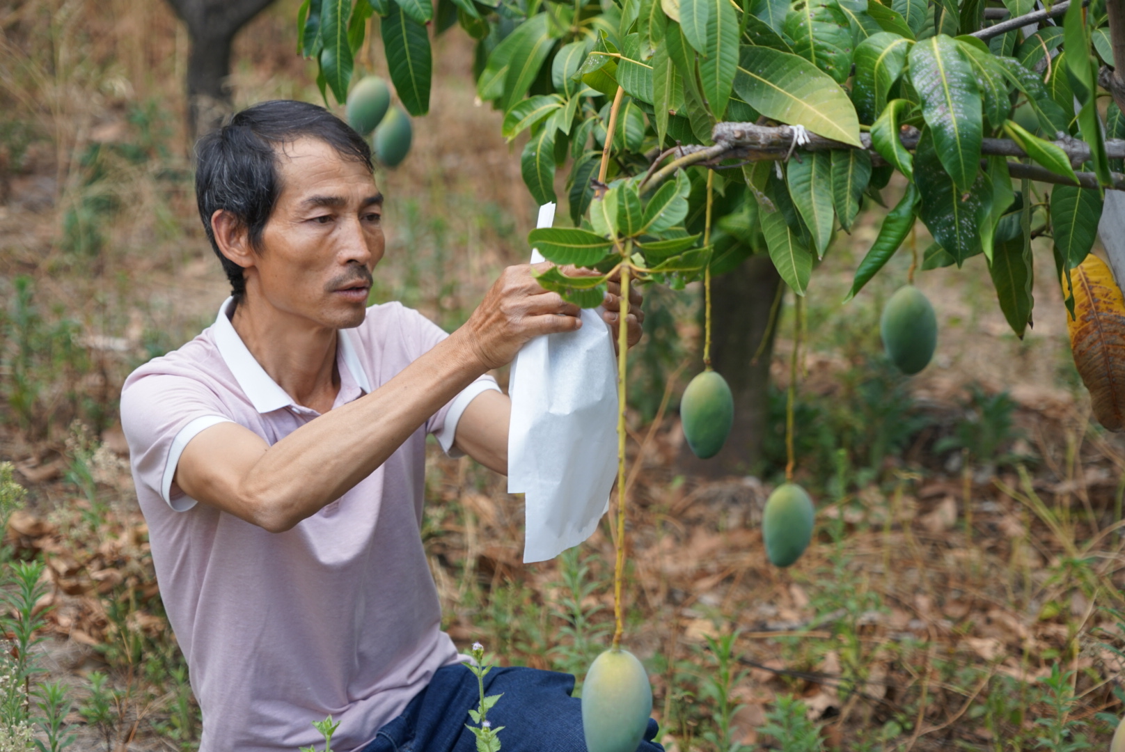 進(jìn)入六月,芒果種植戶忙著給果實(shí)套上果袋以求美觀的品相,孫紹華家也不例外,于是商量片刻后,父子倆帶上工人到芒果地里對(duì)果實(shí)進(jìn)行套袋。