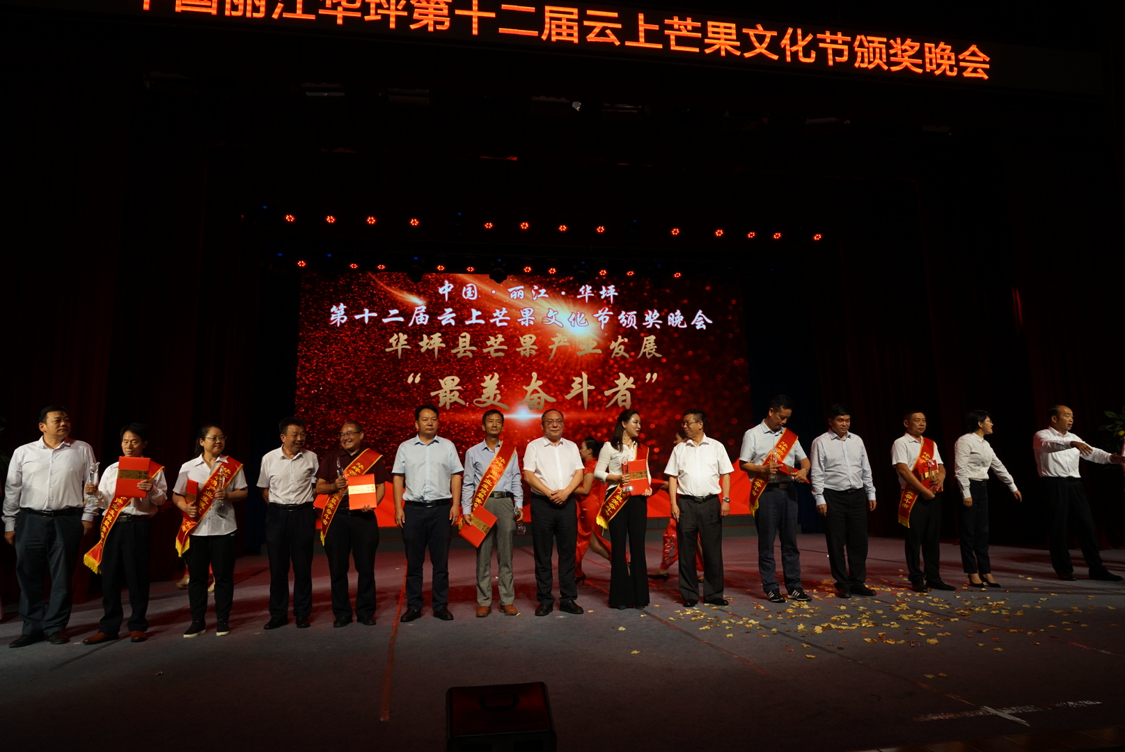 8月18日,中國(guó)麗江華坪第十二屆云上芒果文化節(jié)頒獎(jiǎng)晚會(huì)在華坪縣文體中心舉行。整個(gè)頒獎(jiǎng)晚會(huì)分為《開(kāi)拓》《奮進(jìn)》《追夢(mèng)》三個(gè)篇章共11個(gè)節(jié)目,通過(guò)情景劇、歌舞、詩(shī)朗誦等形式為現(xiàn)場(chǎng)觀眾帶來(lái)精彩紛呈演出的同時(shí)也展現(xiàn)出了“華坪歷史悠久、人杰地靈,敢于創(chuàng)業(yè)、敢闖敢干、敢為人先、敢于擔(dān)當(dāng)”的華坪精神。
