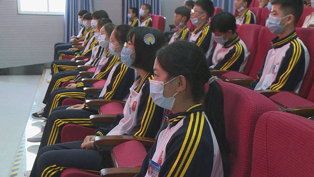 在市一中高二439教室里,學(xué)生們在科任老師的帶領(lǐng)下認(rèn)真觀看并學(xué)習(xí)了新學(xué)期的第一堂思政課。