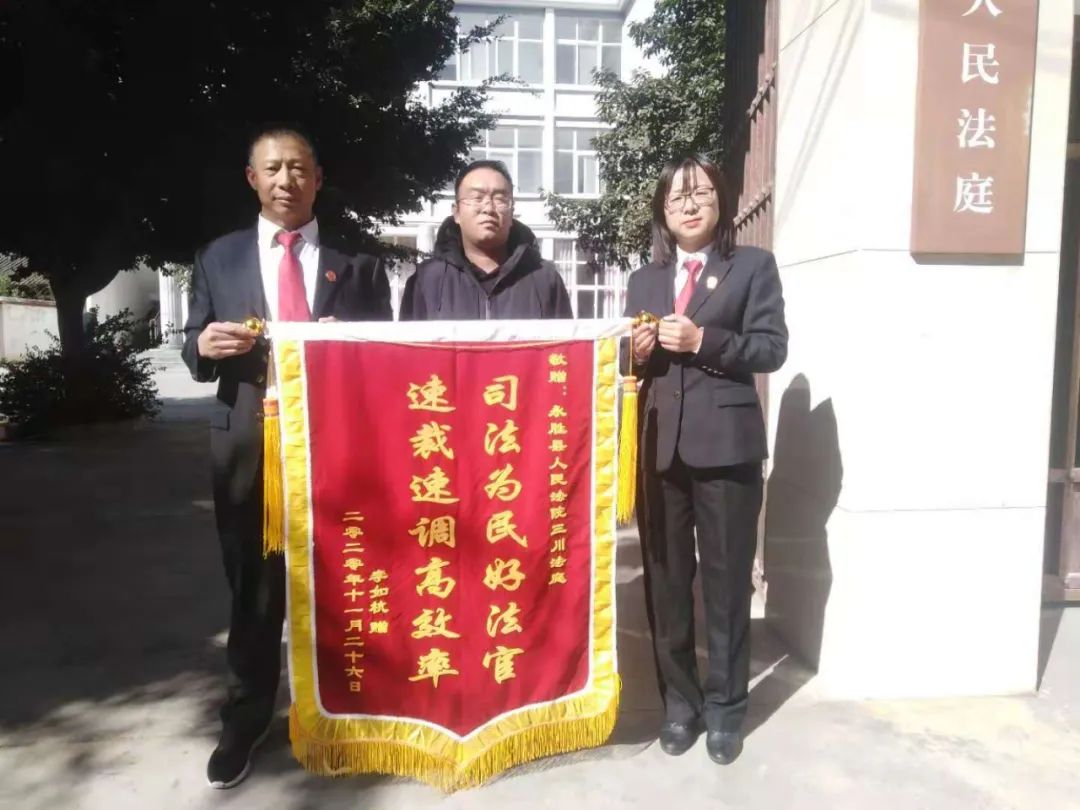 11月26日一大早,永勝縣人民法院三川人民法庭迎來一位當(dāng)事人,他手里攥著一面寫著“速裁速調(diào)高效率、司法為民好法官”的錦旗,向三川法庭的法官表達(dá)了一份由衷的謝意。