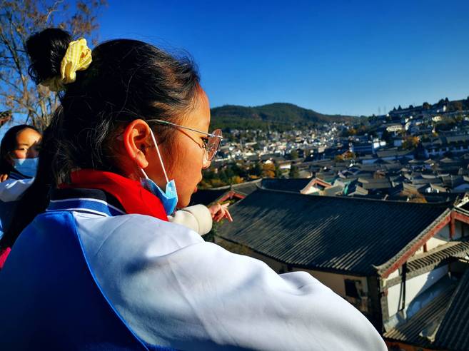 隨后,同學(xué)們又來到麗江古城觀景臺俯瞰古城,在這里他們看到了高大偉壯的百年參天古樹,領(lǐng)略了雅致幽靜的納西園林,在麗江古城歷史文化展示館看到了一系列利用高科技手段講述的百年麗江故事,在東巴文字體驗(yàn)館體會了這個古老象形文字的神奇魅力,最后在麗江古城天地院欣賞了淳樸熱烈的納西歌舞……